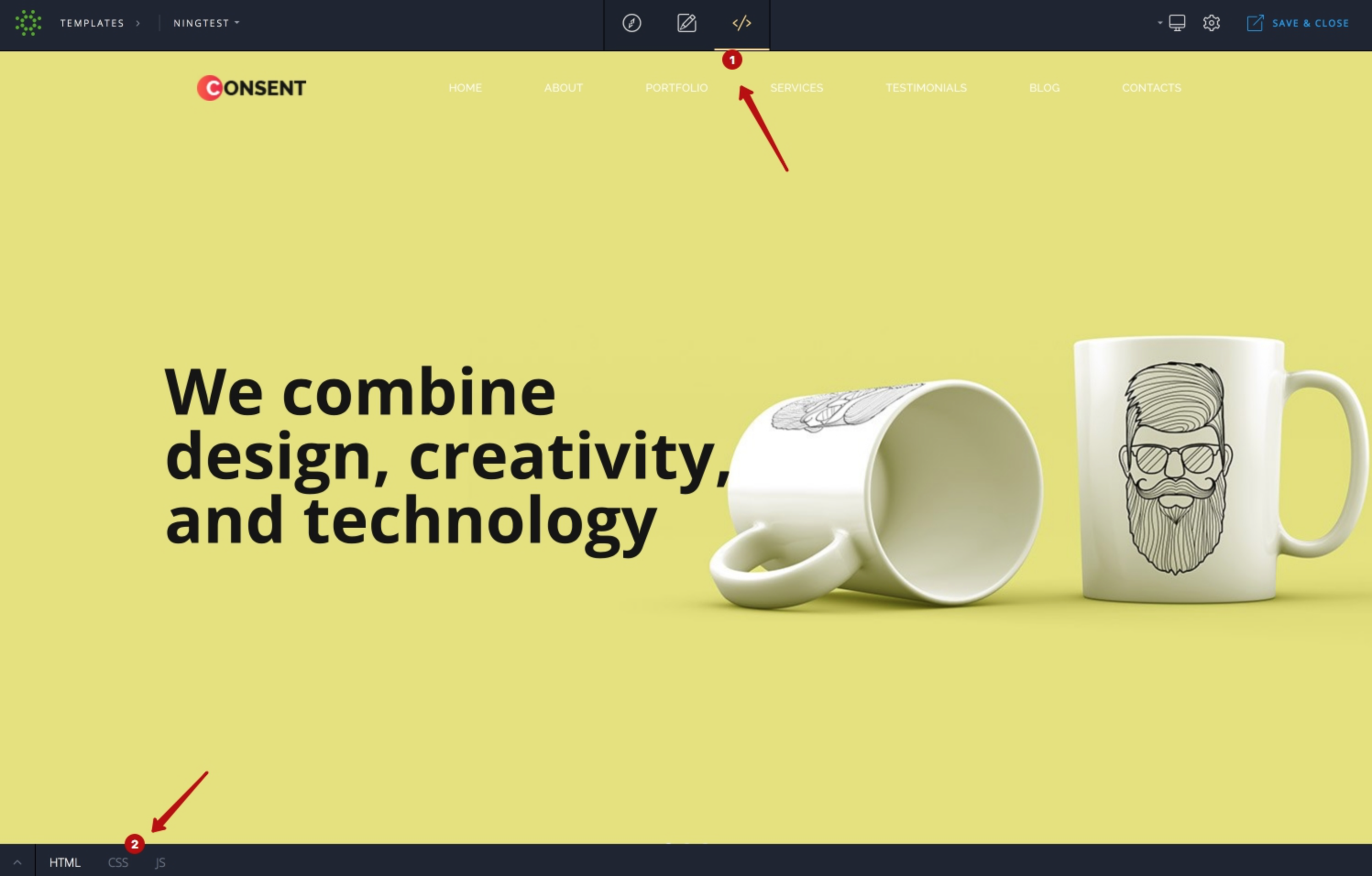 - Open the JavaScript editing panel (image 1, step 2).