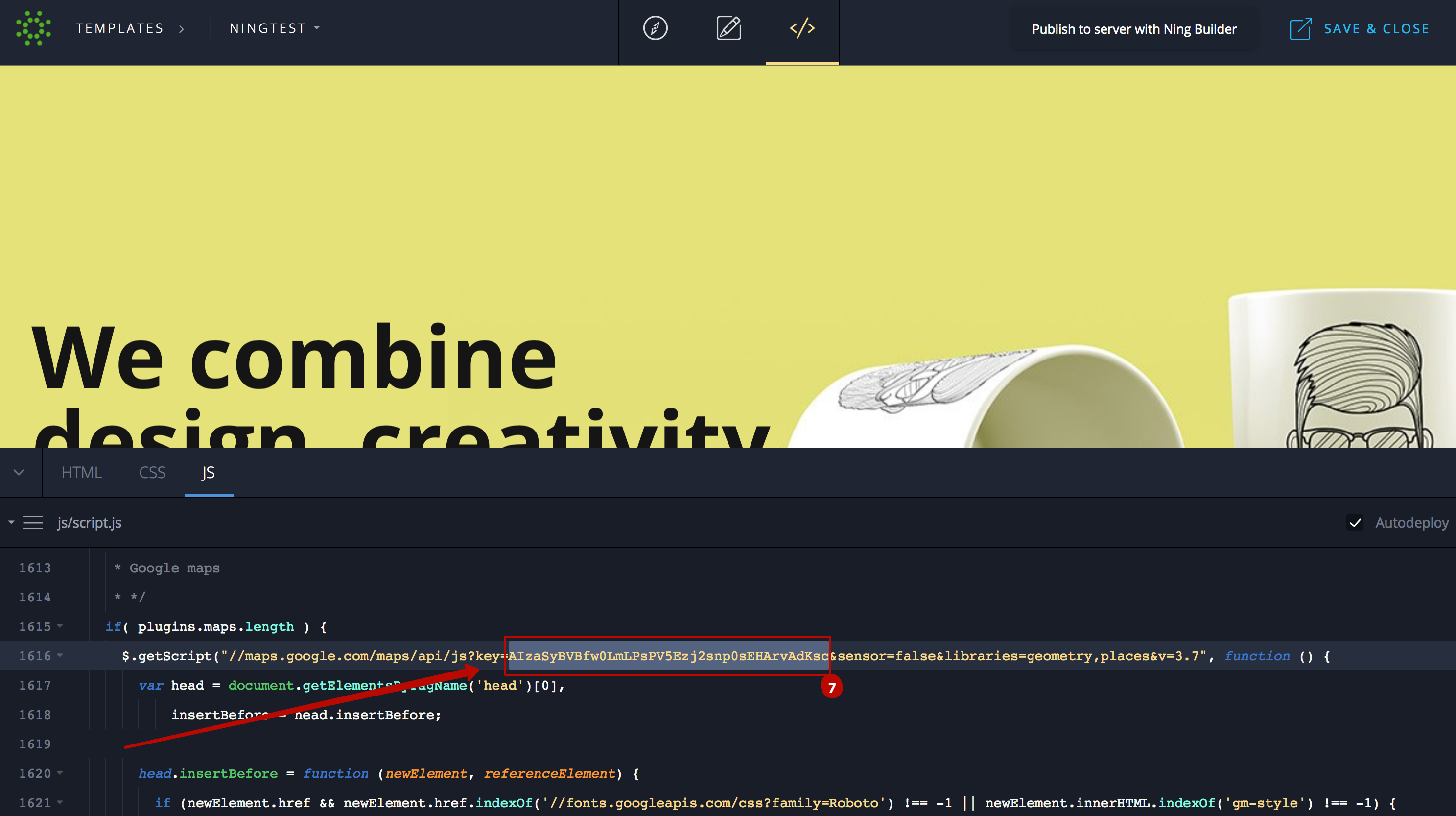 How to change a Google Maps API key on NING Landing Page Builder